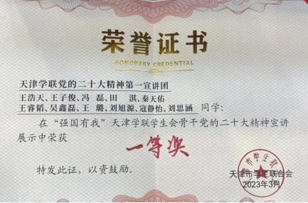在本月初团市委、市学联举办的天津学联学生会骨干学习党的二十大精神专题培训班上,刘思涵同学深刻领会了习近平新时代中国特色社会主义思想和习近平总书记关于青年工作重要思想的精神实质和丰富内容👩👧,自身的理论素养🧔、研究能力和实践水平都有了大幅提升,在培训班宣讲汇演中获得一等奖💁🏼🗻。