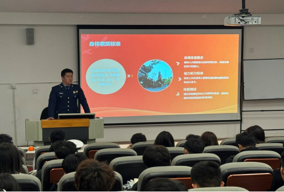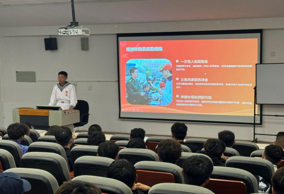 预储连退伍同学们依次上台进行宣讲。他们身着整齐的军装,英姿飒爽,精神抖擞𓀚。宣讲中↔️,他们不仅分享了自己在军队中的成长历程,还详细介绍了征兵政策、入伍流程以及军队生活等各方面。通过生动的故事和真实的感受,让在场的同学们深刻感受到军队生活的艰辛与荣耀,激发了大家的爱国热情🧚🏿♀️。互动环节中🎓,同学们纷纷举手提问👾,退伍同学们耐心细致地解答了征兵政策等相关问题🏃🏻♂️➡️,并鼓励大家珍惜青春年华🦶🏿,勇敢追梦军营🤰🏼。