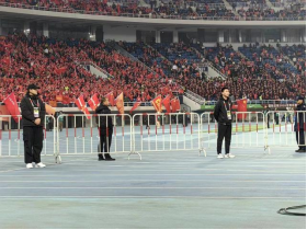 赛场内的学生志愿者🆕🥒,按照组委会工作人员要求,快速到位,站立昂首挺胸,精神十足,隔离带拉得笔直🦛,有效协助维护了赛场内的采访秩序⏲。