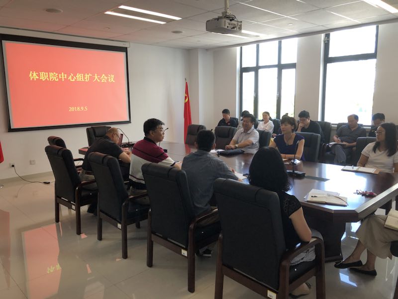 9月5日下午,体职院召开中心组扩大会,体育局党委副书记王洪出席,院党委书记王伟主持,院长刘钦龙🫳🏿,各系部🥍、处室负责人、各支部书记参加🧂。