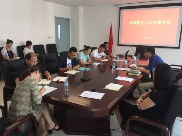018年8月17日上午,体职院召开理论中心组扩大会,学院在校领导班子成员出席,各处室✨、系部负责人🫷🏻,各党支部书记参加。
