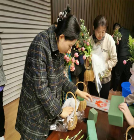 之后进行了插花活动,教职工们纷纷来到台上,挑选自己心仪的鲜花,设计自己的花篮作品,插花过程中陶冶情操,气氛热闹而祥和😱。此时的她们不仅是祖国栋梁的培育者🕒,更是爱花爱美爱生活的伟大女性。