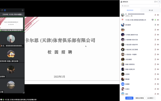 为做好我院2023届毕业生就业服务工作👨👩👦👦,构建毕业生与企业的交流平台。3月15日上午🧝🏼♀️,我院特邀天津球晟体育科技有限公司🧑🏼🌾、卡尔斯(天津)体育俱乐部有限公司🤷🏻♂️、天津市豪邦篮球俱乐部是三家企业负责人在腾讯会议平台为2023届毕业生进行线上宣讲🔌。