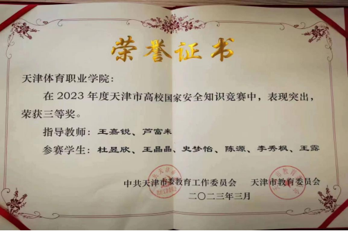 我院荣获天津市高校国家安全知识竞赛三等奖