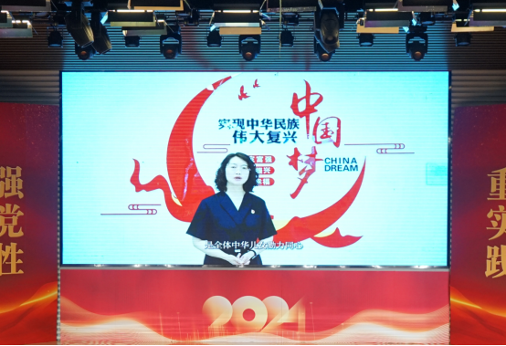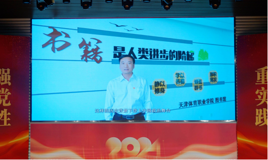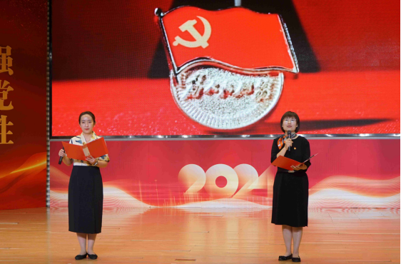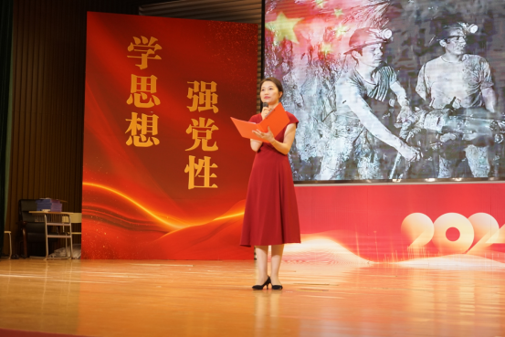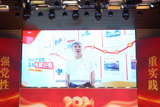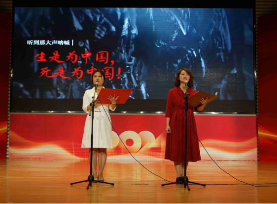 学院党委书记杨军👵、学生处教师王慧朗诵《中国共产党百年述职报告》