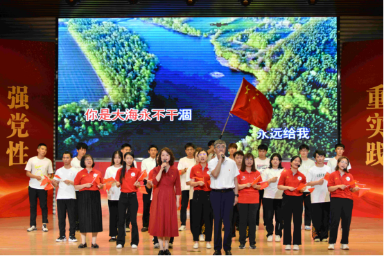 学院党委书记杨军、党委副书记👨🏿‍🔧、院长王伟带领思政课部教师和学生献唱歌曲《我和我的祖国》