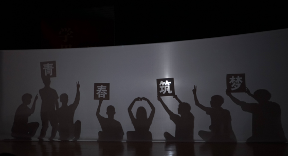 教师李文学、韩晓宁、唐家阁与学生合唱《青春》