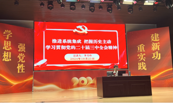 李月玲教授结合自身成长经历和感悟,以党的二十届三中全会《决定》的整体框架切入🤺,围绕全会召开的时代背景与重大意义🚶🏻➡️、全会精神的核心要义与重点把握以及学习贯彻全会精神的要求与举措三方面☞,用生动的语言和鲜活的案例,以“方位”“方向”“方法”三个维度深入浅出地从“为什么改”“往哪里改”“怎么改”对全会精神进行系统宣讲和深入阐释。
