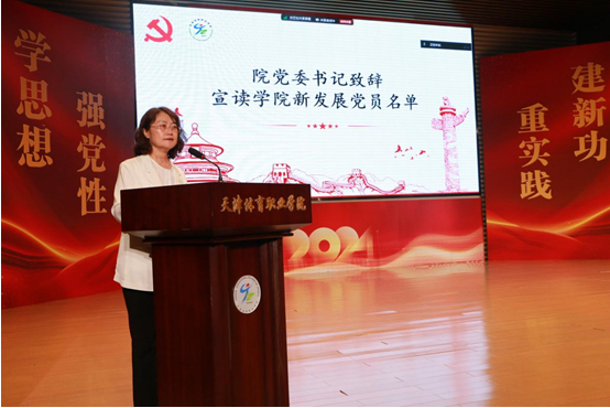 仪式在雄壮的《国际歌》中拉开帷幕。学院党委书记杨军致辞并宣读学院新发展党员名单,并对新加入党组织的五位同志表示衷心的祝贺!希望新党员不辜负党组织的期望,牢记党旗下所立的誓言,以实际行动践行诺言,为党旗增光添彩,为党和人民的事业奋斗终身!