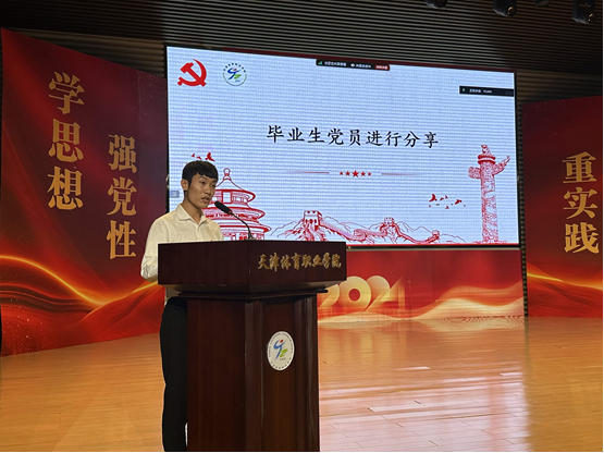 毕业生党员代表进行事迹分享🦖,衷心感谢学院党委🗄🐕、党支部的悉心教育和培养,并表示将以一名合格党员标准要求自己🧑🏼✈️🧑🏽⚕️,加强党性修养👨👨👧👧💥,不忘入党初心🛌🏼,牢记使命担当,弘扬爱国之志,积极主动投入到社会实践中去🈂️👈🏻,将个人理想追求融入国家与民族的事业发展中,勇做新时代奋斗追梦人。
