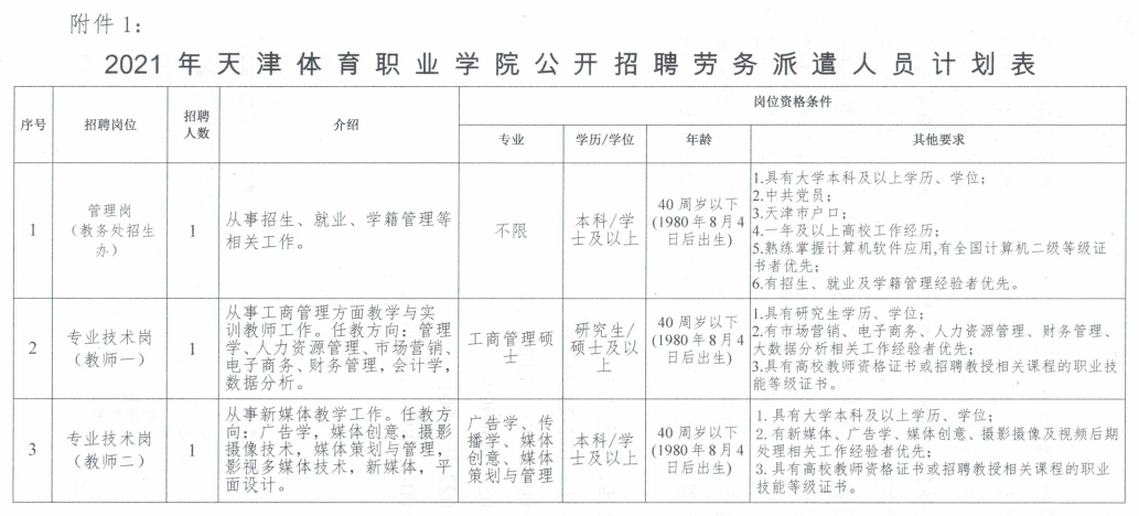 (三)岗位所需的其他条件详见《2021年彩神Vll学院公开招聘劳务派遣人员计划表》(附件1)